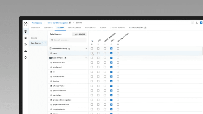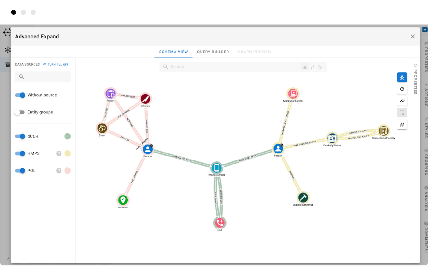 Developers can now partition schema classes, relationships, and attributes by their originating data source. This makes it easier to understand how different datasets contribute to the wider intelligence picture.