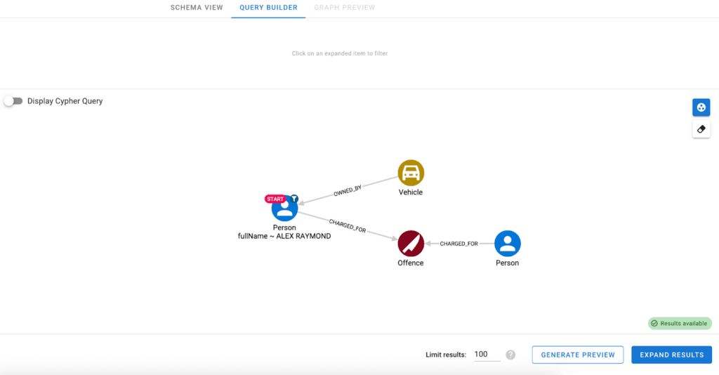 In this scenario, that might mean starting with a set of incidents and identifying the vehicles and individuals associated with them.