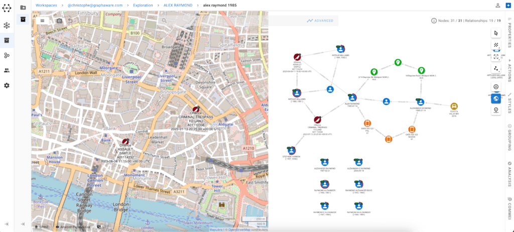 Instead of searching across isolated records, they explore how people, vehicles, locations, and events relate to each other, building a clearer understanding of how activity connects.
