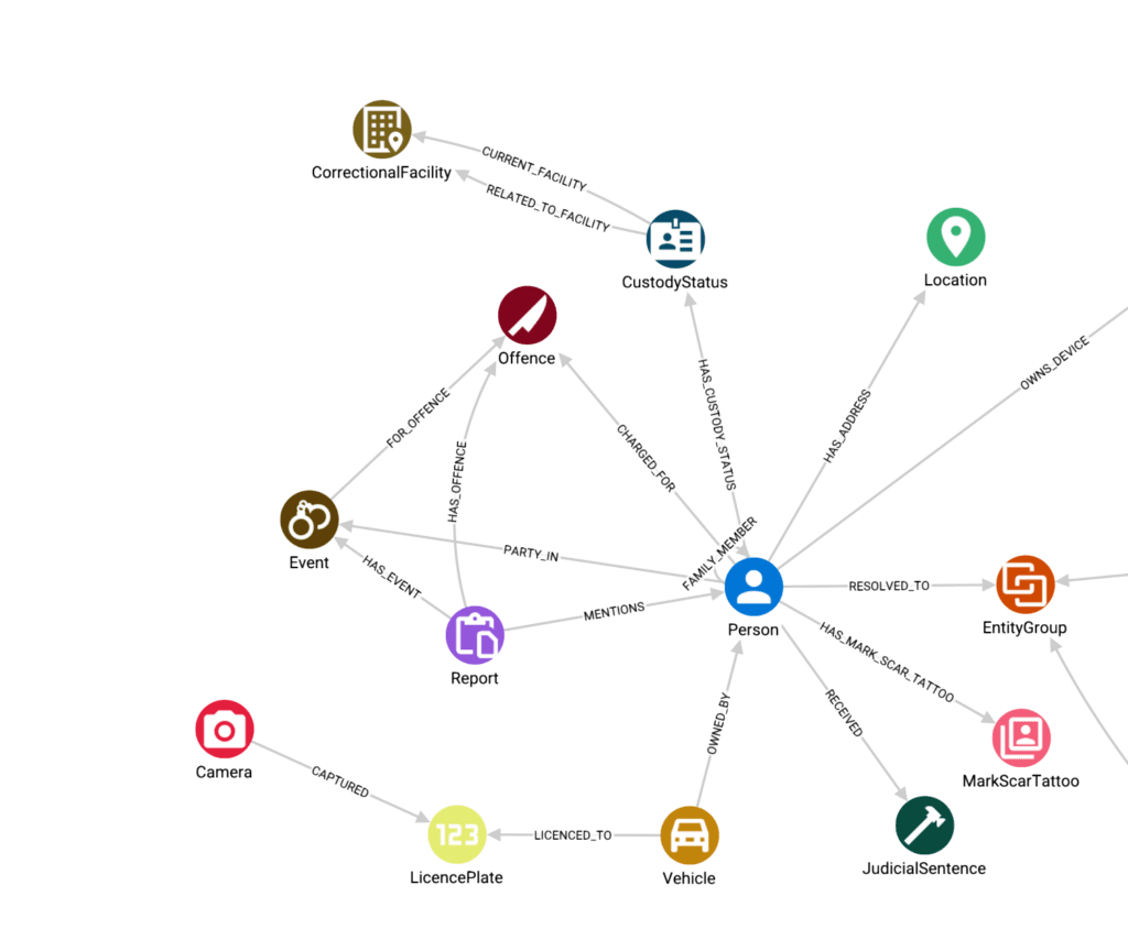 - Tracing connections from incidents to related people, vehicles, and locations