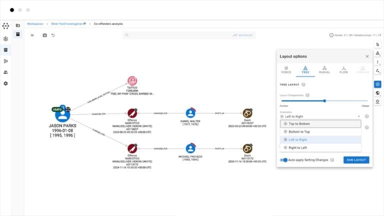 New layout controls allow analysts to align, arrange, and distribute nodes into cleaner, more structured views.